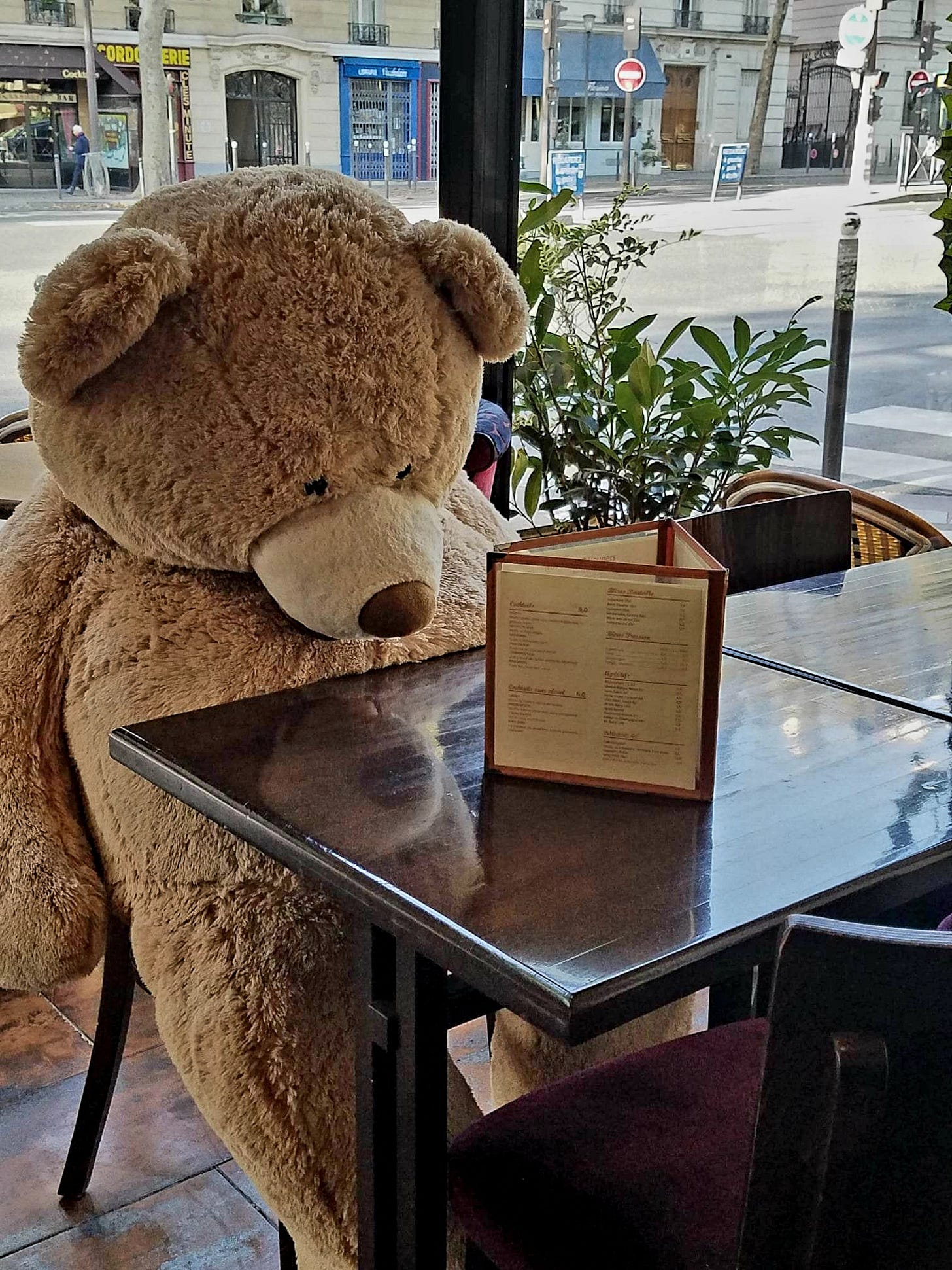 I’m not sure exactly when or where I saw the first bear on the streets of Paris. Certainly it was in the Les Gobelins neighborhood, and most likely at a café. In fact, there were two of them sitting at a table complete with coffee cups, visible through the large windows facing the sidewalk. It may have been 2019.